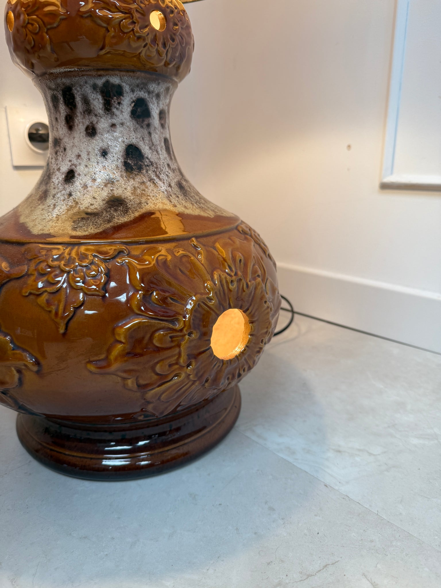 Parfait état de la céramique, l'abat-jour possède des traces d'utilisation sur le bord bas . ( voir les photos)